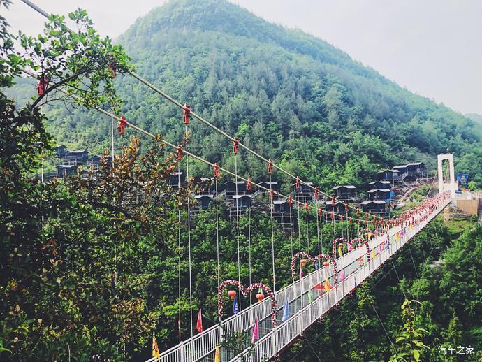 游玩推荐——9D玻璃悬索桥一进入景区门口首先映入眼帘的就是全国首座9D玻璃悬索桥,横跨在峡谷上,非常壮观。这条玻璃桥全长268米,桥面宽3.2米,桥面离河谷高约200米,是鄂西南最长,最高的峡谷玻璃悬索桥。